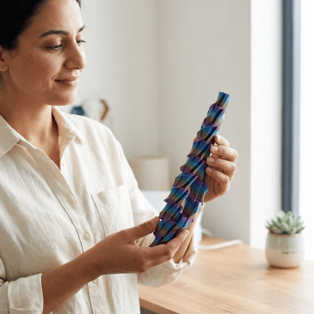 Sıradan stres oyuncaklarını unutun. 3D baskı teknolojisiyle özenle üretilen ve muhteşem bukalemun renk geçişlerine sahip bu Spiral Fidget, hem görsel bir şölen hem de eşsiz bir dokunsal tatmin sunuyor.