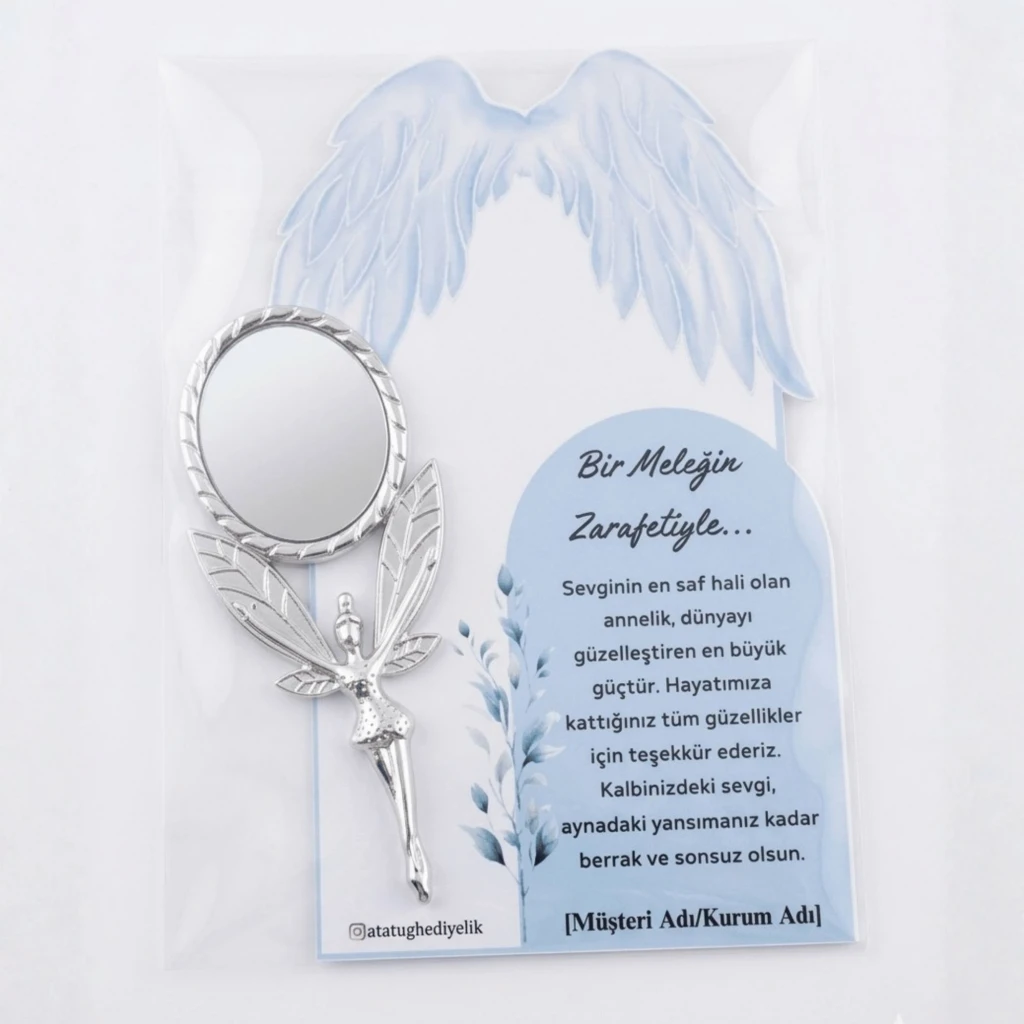 Çalışanlarınıza veya velilerinize sunabileceğiniz, melek kanatları temalı anlamlı bir hediye alternatifi. Bu ürün 3'lü avantajlı paket halinde satılmaktadır. Sepetinize 1 adet eklediğinizde, 3 adet gümüş metal ayna ve özelleştirilmiş kart seti gönderilecektir.