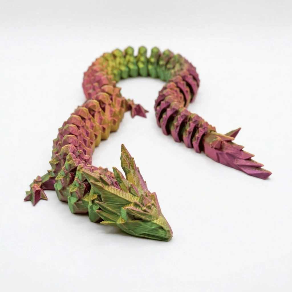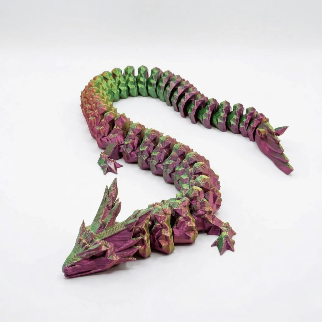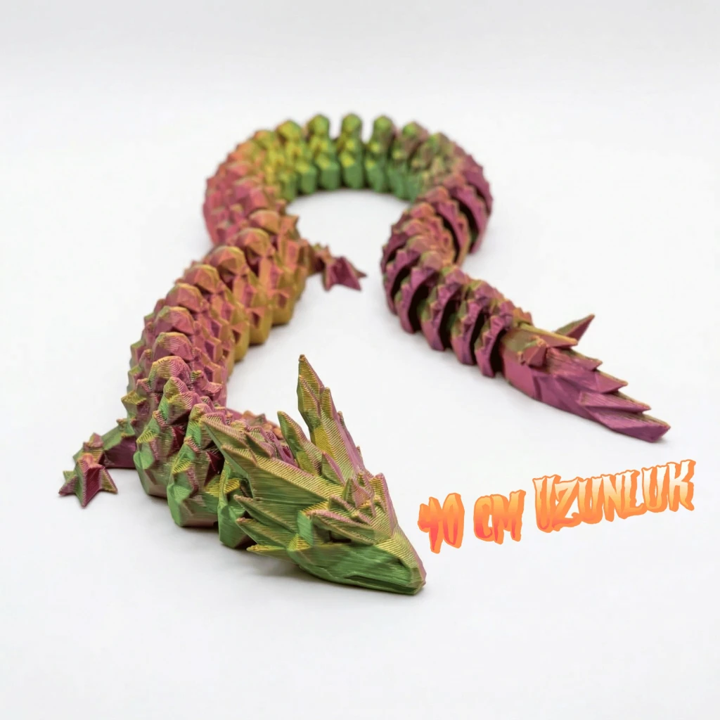 Göz alıcı renklerin eşsiz uyumunu ve 3D baskı teknolojisinin ulaştığı kusursuz detayı sevdiklerinize hediye etmeye hazır mısınız? Altın Yeşil Kırmızı Geçişli Hareketli Eklemeli Ejderha Figürü, sıradanlığa meydan okuyan tasarımıyla dikkat çekiyor.