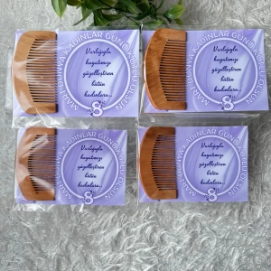 Doğal Ahşap Tarak – Kartlı Özel Kadınlar Günü Hediyesi