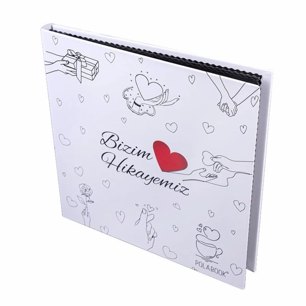 Polabook Bizim Hikayemiz hazır anı defteri, 40 baskı fotoğrafla dolu, stickerlı süslenmiş sayfalarıyla hediye etmeye hazır romantik bir hatıra albümüdür. Beyaz kalem hediyelidir.