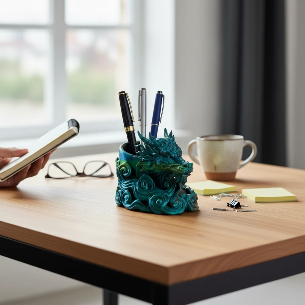 Sevdiklerinize sıradan ofis eşyaları vermek yerine, çalışma masalarında her an dikkat çekecek bir sanat eseri armağan edin. Atatuğ Hediyelik olarak özenle sunduğumuz Renk Değiştiren Ejderha Kalemlik, hem işlevsel bir masaüstü düzenleyici hem de büyüleyici bir dekoratif objedir.