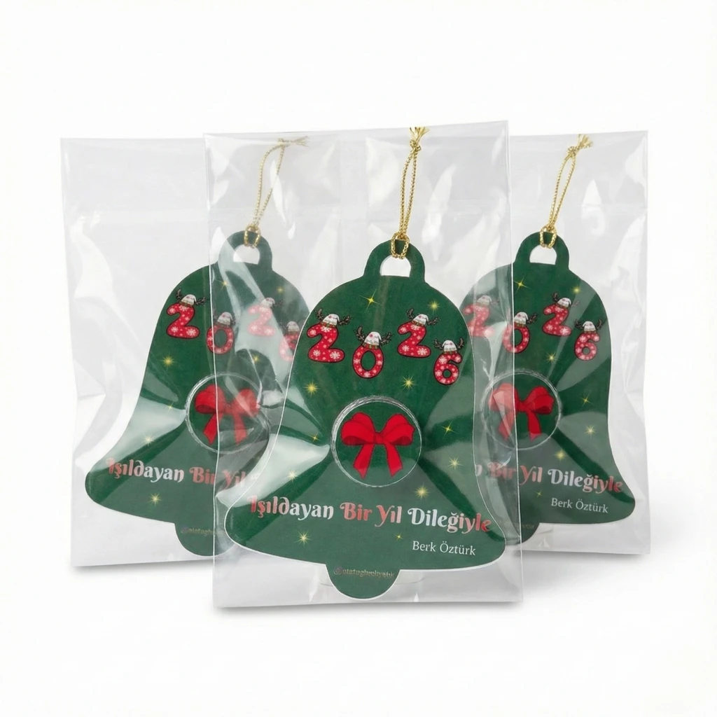 Sıradan tebrik kartlarını unutun. Bu sene yeni yıl mesajınızı, müşterilerinizin veya sevdiklerinizin yıl boyu kullanabileceği, çam ağaçlarında gururla sergileyeceği özel bir tasarımla iletin.