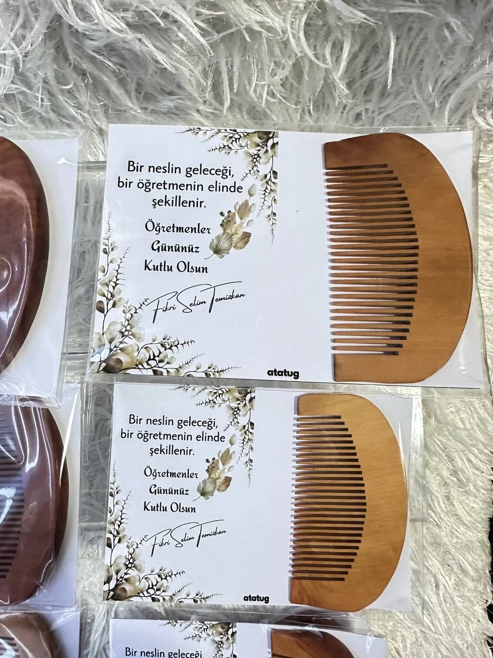 Bu özel tasarım doğal ahşap tarak, öğretmeninizin emeklerine minnettarlığınızı göstermek için sade ama çok anlamlı bir hediye seçeneğidir.