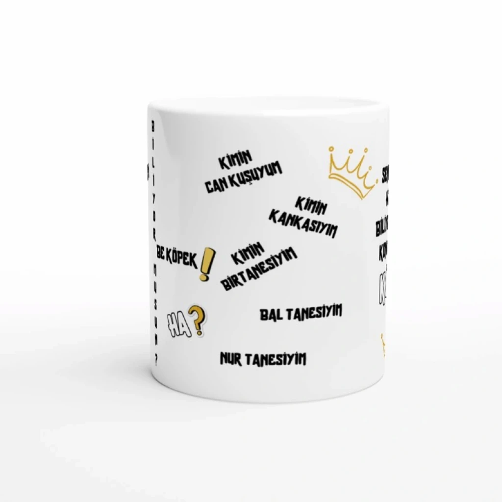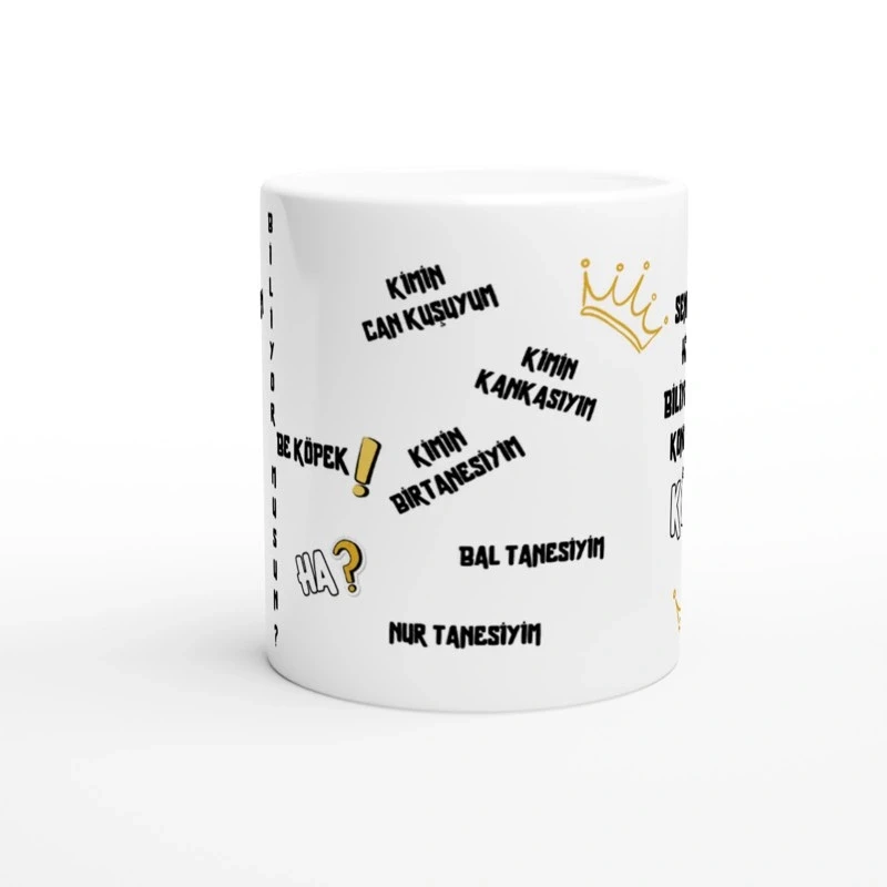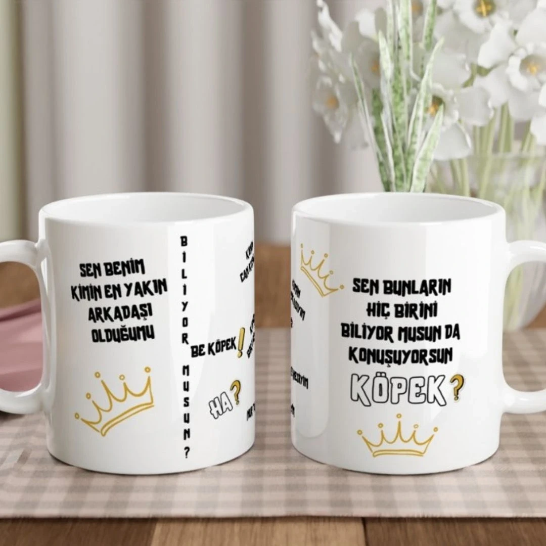 Giray Altınok’un hayat verdiği Prens karakterinin, sevilme ihtiyacını ve egosunu aynı anda haykırdığı o kaotik anları bu kupada bir araya getirdik. "Sen benim kimin en yakın arkadaşı olduğumu biliyor musun?" sorusuyla başlayan ve "Be Köpek!" ile biten bu tipografik şölen, kahve molalarınızın en eğlenceli parçası olacak.