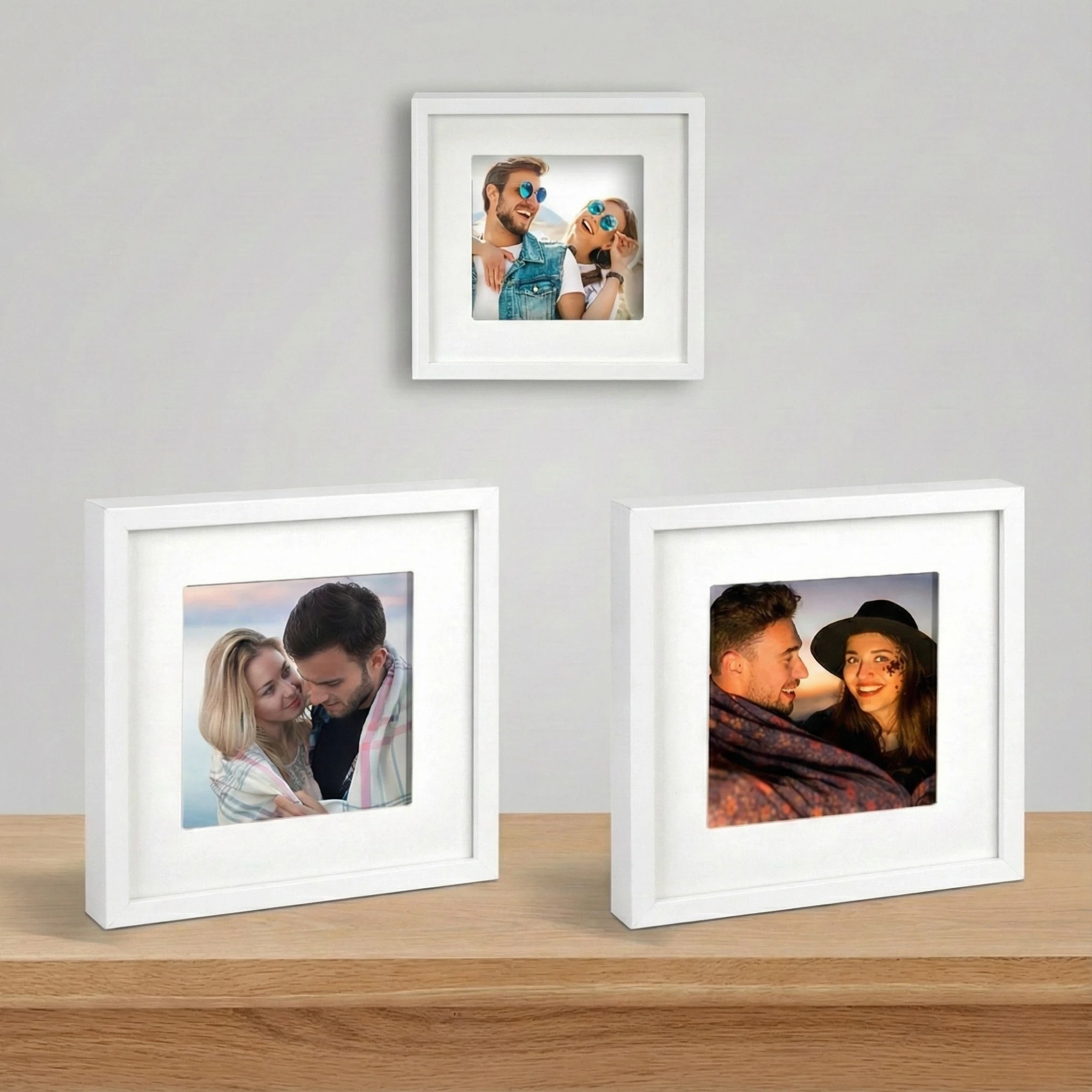 Biz Hazırlayalım: Fotoğraflarını 8x8 cm boyutunda yüksek kalitede basıp, 14x14 cm'lik şık beyaz çerçevenin içine özenle yerleştirelim.