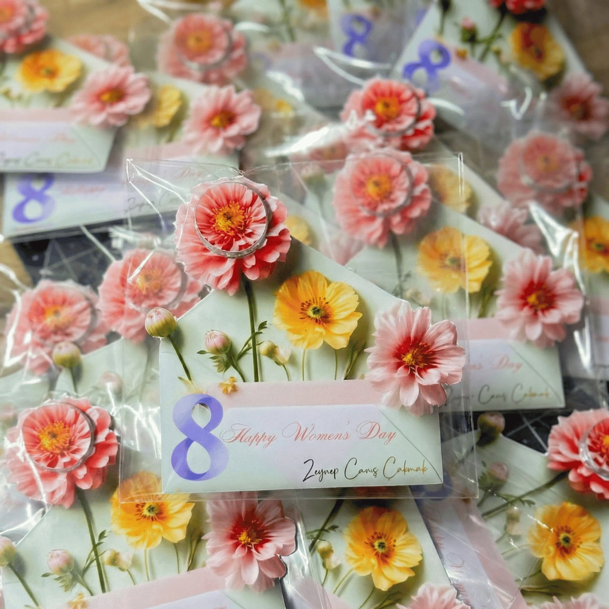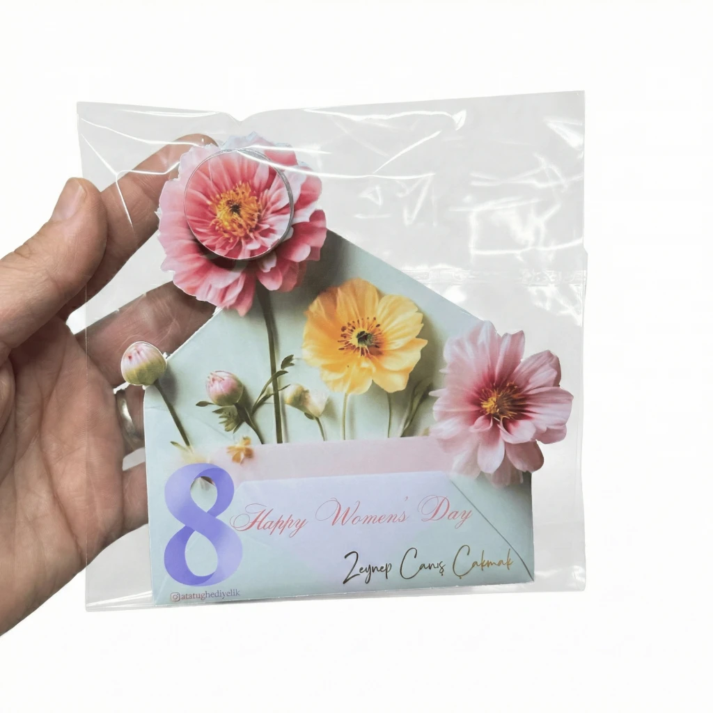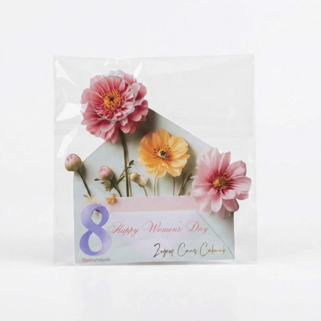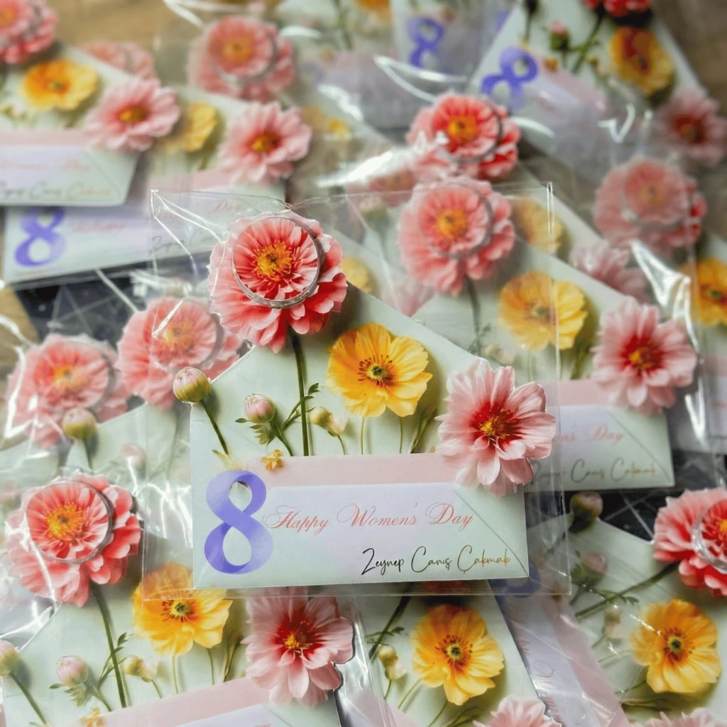 Tasarım: 8 Mart Kadınlar Günü konseptine uygun zarif çiçek desenli kartonet.