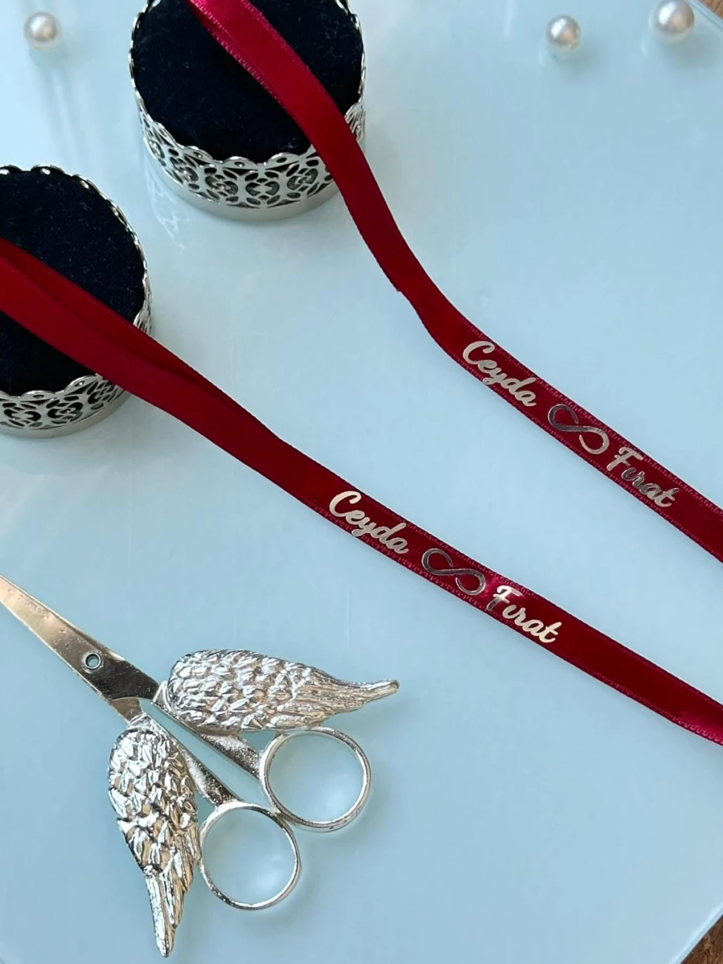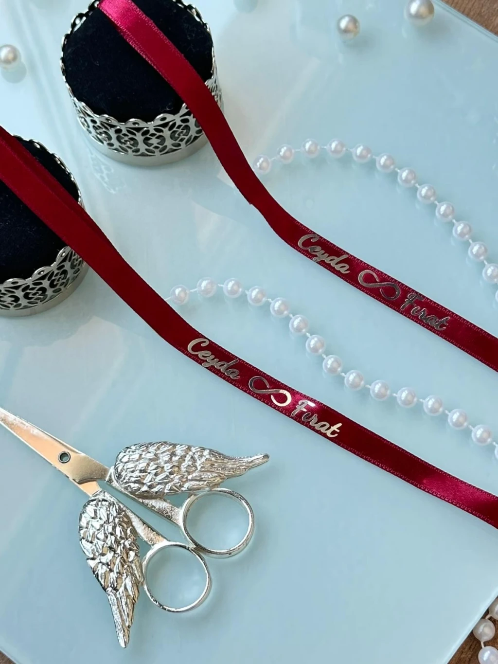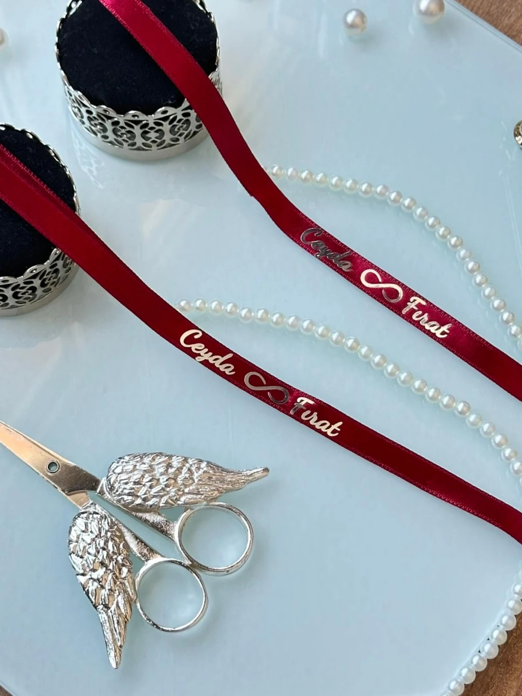 Bordo saten dokusuyla şıklığın simgesi olan bu özel söz kurdelesi, kişiye özel isim baskısıyla ömür boyu saklanacak bir hatıra sunar.