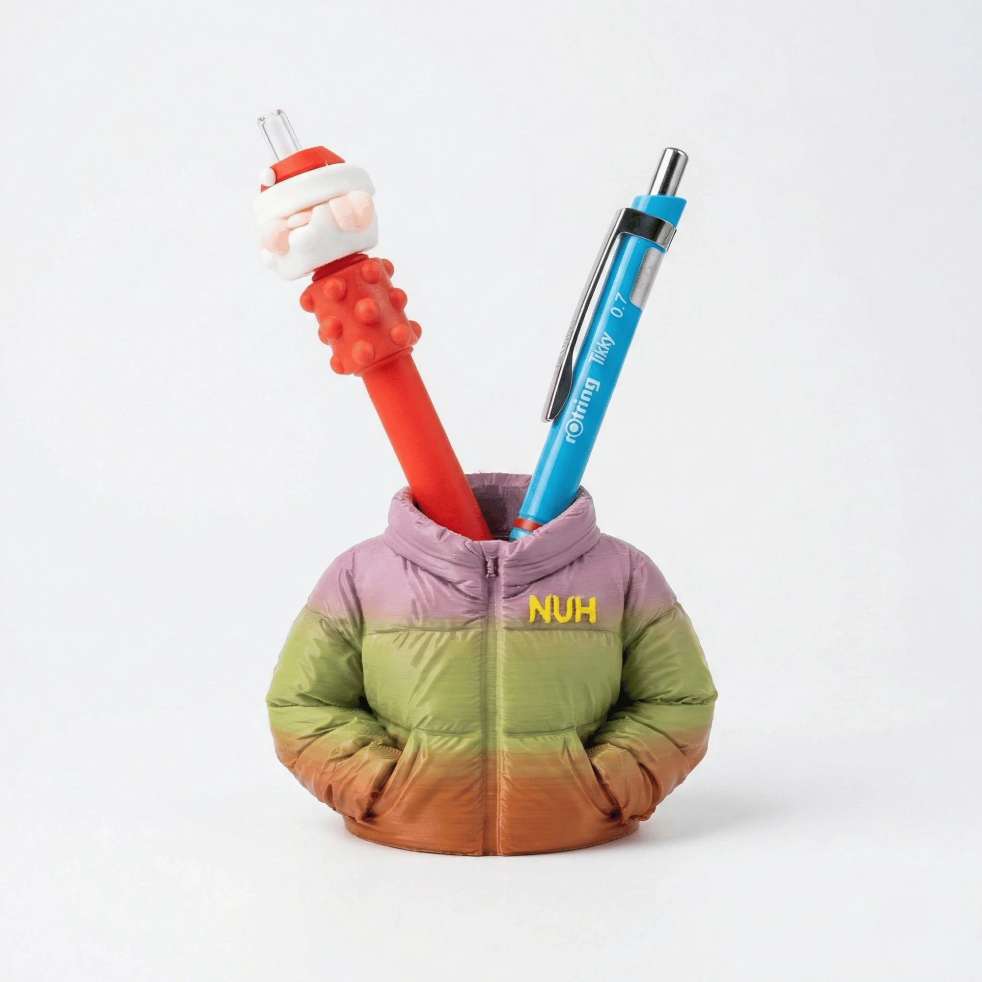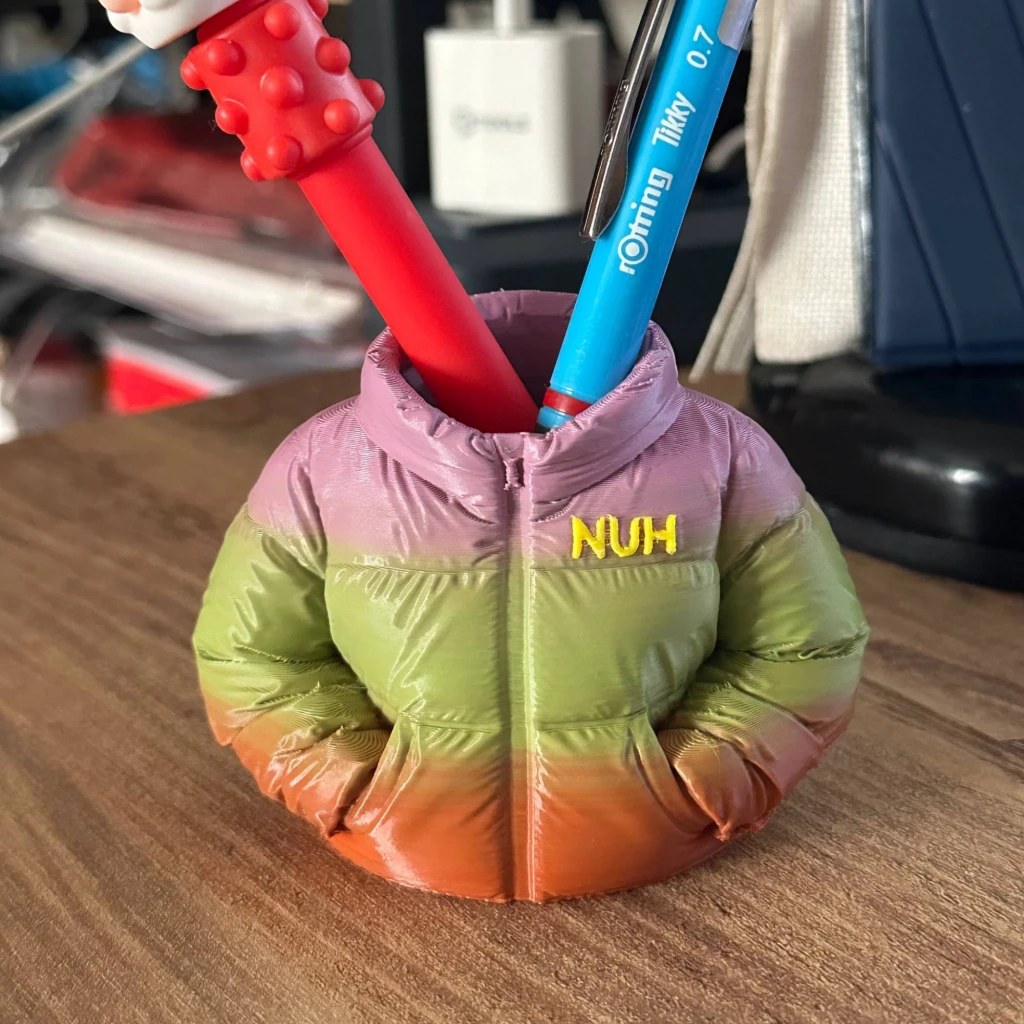 Gerçekçi ve Dekoratif Detaylar Sokak modasının vazgeçilmezi olan puffer (şişme) montlardan ilham alınarak tasarlanan bu ürün, gerçekçi kıvrımları ve tok duruşuyla masadaki tüm dikkatleri üzerine çeker. Kalem, fırça veya ofis gereçlerini toparlarken, tek başına bile harika bir dekoratif objedir. Yeni iş tebriği, doğum günü veya içimden geldi hediyesi olarak harika bir motivasyon kaynağıdır.