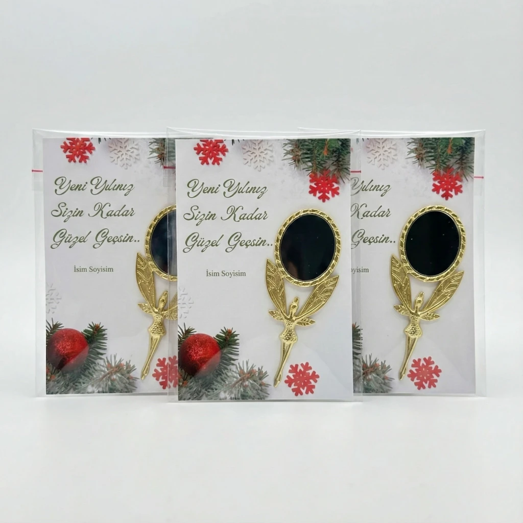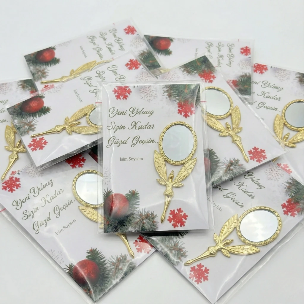 Sevdiklerinize, çalışanlarınıza, müşterilerinize veya öğrencilerinize yeni yılda kendilerini değerli hissettirecek, ışıltılı ve anlamlı bir hediye verin. Üzerinde "Yeni Yılınız Sizin Kadar Güzel Geçsin" mottosu yer alan bu özel tasarım kartlar, zarif peri kızı formundaki aynalarla tamamlanmıştır.