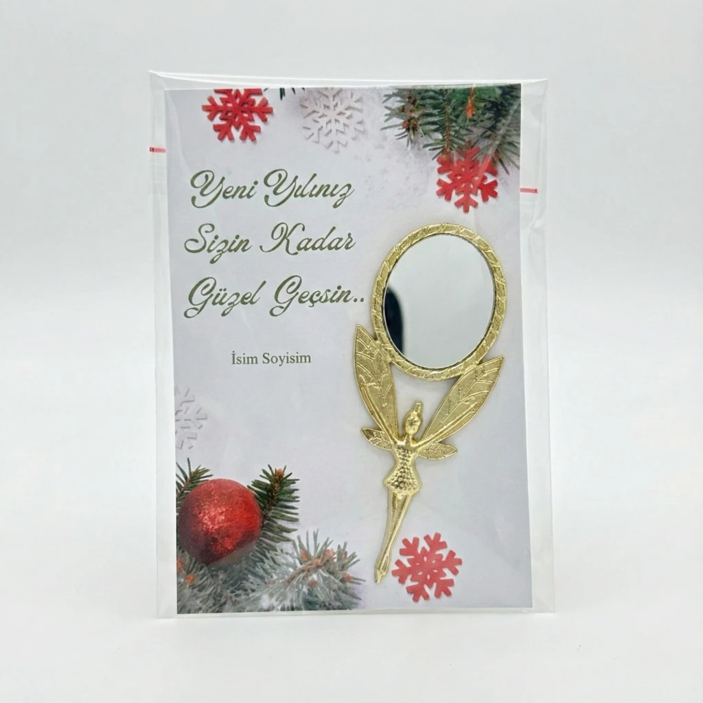 Kişiye Özel İsimli "Güzellik Perisi" Yılbaşı Aynası ve Hediye Kartı (Gold, Gümüş, Bronz Seçenekli)
