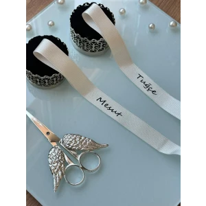 Kişiye Özel Söz Kurdelesi – Sade & İncili & İsim Baskılı Krep Kumaş Kurdele