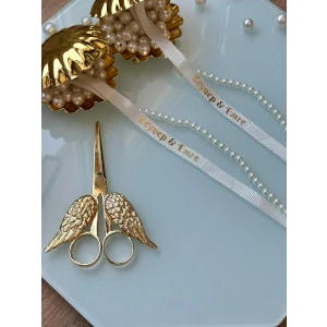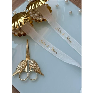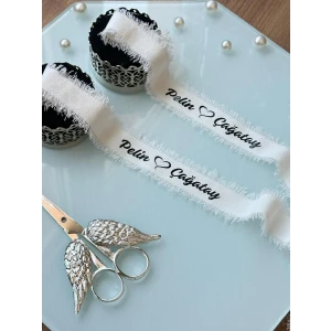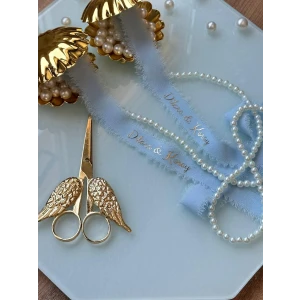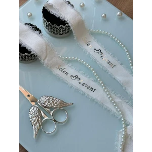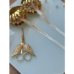 Kişiye Özel Krep Kumaş Söz Kurdelesi – Kırık Beyaz Renk , Sabit veya Dağılan İncili