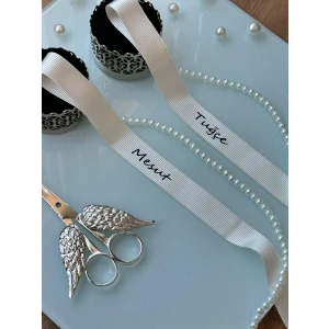 Kişiye Özel Beyaz Grogren Söz Kurdelesi – Sade & İncili & İsim Baskılı Kurdele