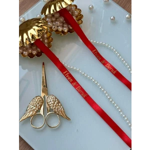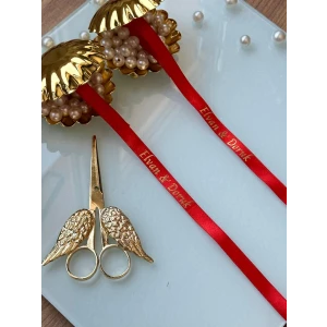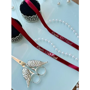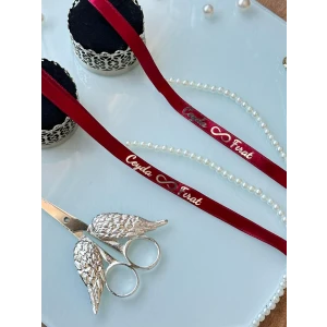 Kişiye Özel Kırmızı Saten Söz Kurdelesi – Sade & İncili & İsim Baskılı Kurdele