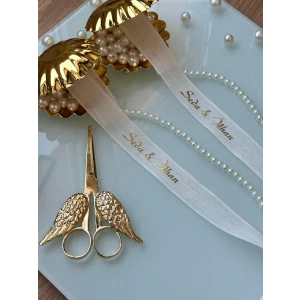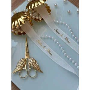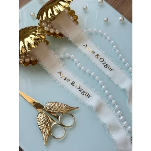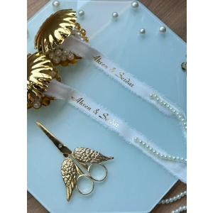 Kişiye Özel Beyaz Saten Söz Kurdelesi – Sade & İncili & İsim Baskılı Kurdele