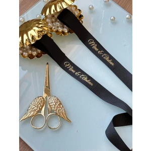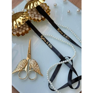 Kişiye Özel Siyah Saten Söz Kurdelesi – Sade & İncili & İsim Baskılı Kurdele