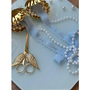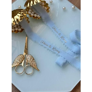 Kişiye Özel Söz Kurdelesi – Sade & İncili & İsim Baskılı Bebek Mavisi Krep Kumaş Kurdele