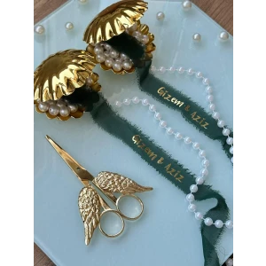Kişiye Özel Söz Kurdelesi – Sade & İncili & İsim Baskılı Zümrüt Yeşili İpek Kumaş Kurdele
