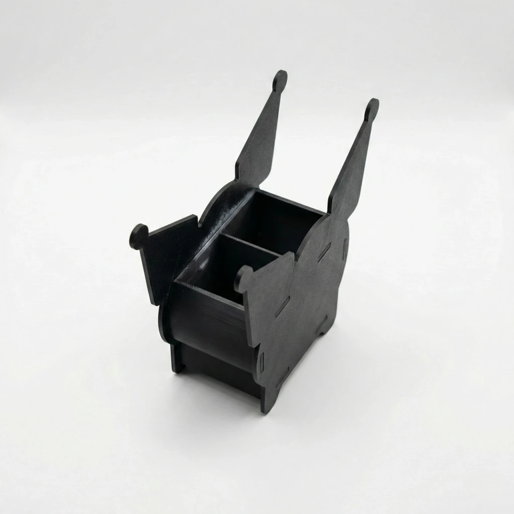 Fonksiyonel Tasarım ve Geniş Hacim Ürün, sadece dekoratif bir obje değil, aynı zamanda işlevsel bir düzenleyicidir. Arka kısmında bulunan derin ve geniş iki ayrı bölme sayesinde kurşun kalemler, boya kalemleri, makaslar veya makyaj fırçaları gibi farklı boyuttaki eşyalarınızı kategorize ederek saklayabilirsiniz. Masanızdaki dağınıklığı ortadan kaldırır.
