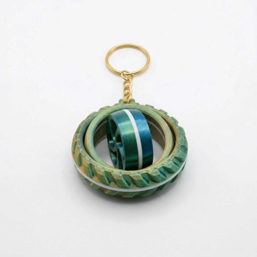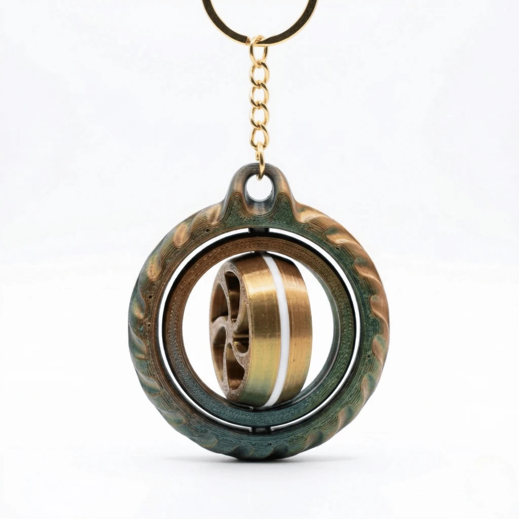 Mekanik Kinetik Gimbal Dönen Fidget 3D Baskı Silk PLA Anahtarlık