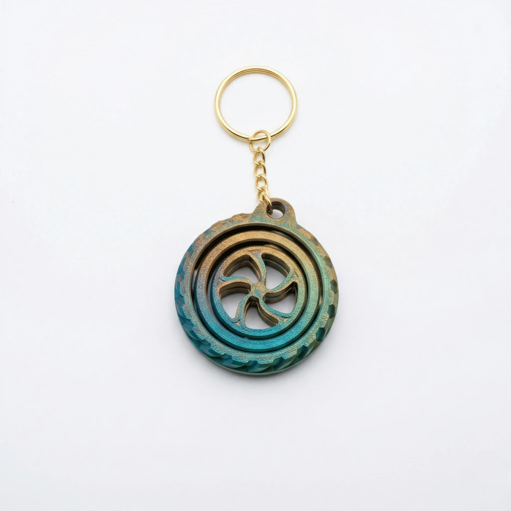 Ürünün en belirleyici özelliği, özel silk PLA filament kullanımıdır. Dış halka, ışığa göre değişen yanardöner bir mavi ve yeşil (patina) geçişine sahipken, iç tekerlek parlak sarı ve altın tonlarında parlar. Merkezdeki beyaz halka bu renkleri vurgular. Silk filamentin pürüzsüz ve parlak yüzeyi, 3D baskının benzersiz katman dokusuyla birleşerek elinizde tutmaktan keyif alacağınız bir his yaratır.