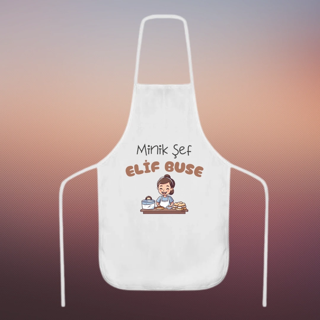 Minik Şef İsimli Kız Çocuk Mutfak Önlüğü | İsme Özel Baskı, Beyaz Polyester Kumaş