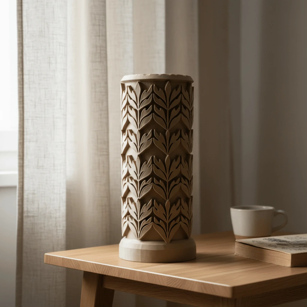 Estetik ve Sanatın Buluşma Noktası Ev dekorasyonunda fark yaratmak isteyenler için tasarlanan bu vazo, simetrik eğrelti otu desenleriyle minimalizmi ve şıklığı bir arada sunuyor. İster çalışma masanızda, ister salonunuzun en güzel köşesinde; bu tasarım her ortamın enerjisini anında değiştirecek.