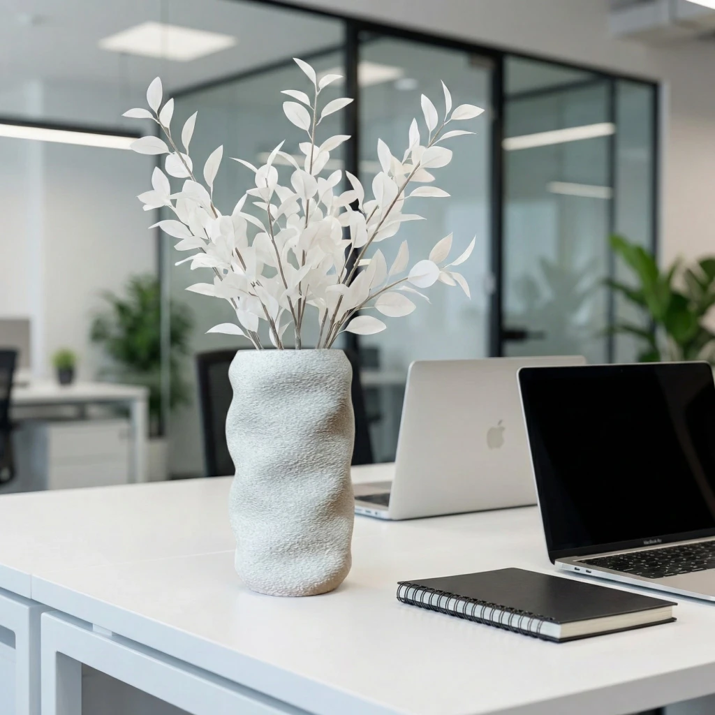 Çok Yönlü Kullanım: Sukulentler, küçük kaktüsler veya tek dal yapay bitkiler (örneğin okaliptüs veya pampas) ile harika bir uyum yakalar. Çiçeksiz olarak tek başına kullanıldığında bile güçlü bir heykelimsi duruş sergiler.