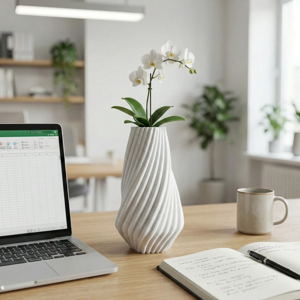 Sıradan vazo tasarımlarından sıkılanlar ve dar alanları değerlendirmek isteyenler için özel olarak üretilen bu Spiral Mermer Dokulu Mini Vazo, estetik ve fonksiyonelliği ideal boyutlarda bir araya getiriyor. Doğadan ilham alan kıvrımlı yapısı ve üzerindeki ince mermer efektli benekler, ürüne hem doğal bir taş görünümü kazandırıyor hem de modern bir sanat eseri havası veriyor.