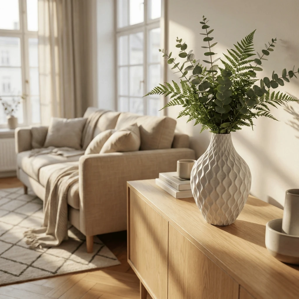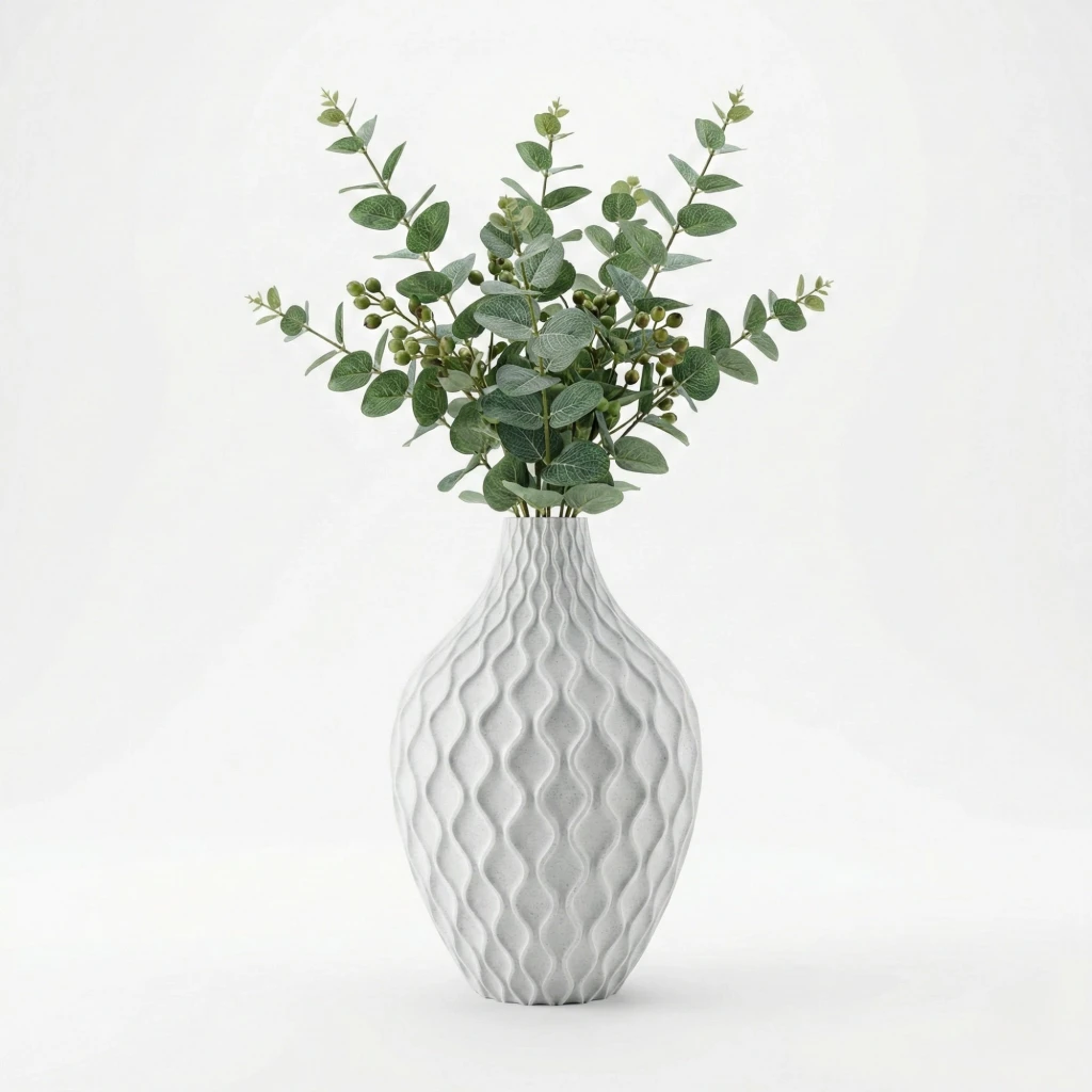 Çok Yönlü Kullanım: Sukulentler, küçük kaktüsler veya tek dal yapay bitkiler (örneğin okaliptüs veya pampas) ile harika bir uyum yakalar. Çiçeksiz olarak tek başına kullanıldığında bile güçlü bir heykelimsi duruş sergiler.
