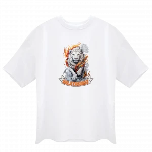 Alevli Gri Aslan Unisex Oversize Tshirt