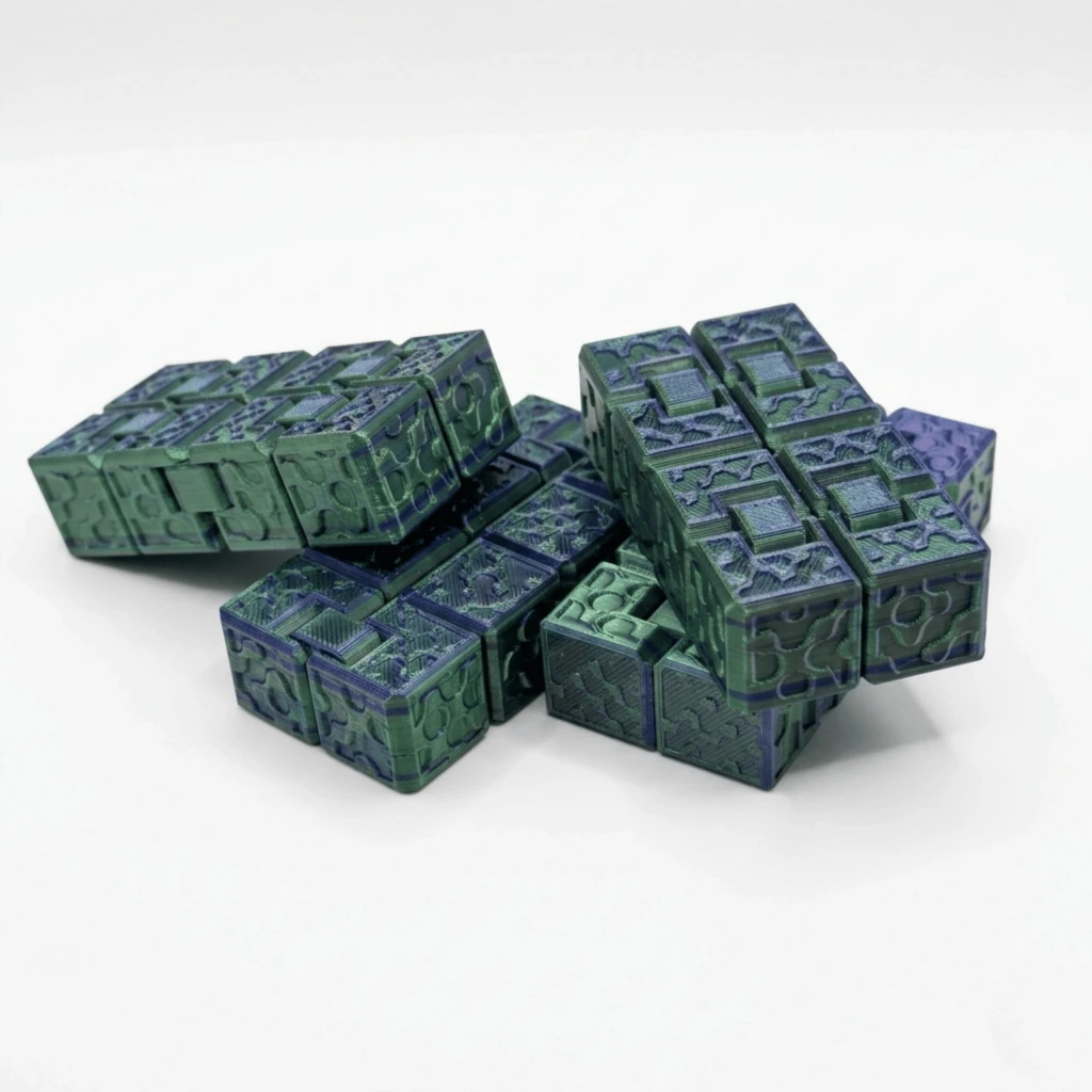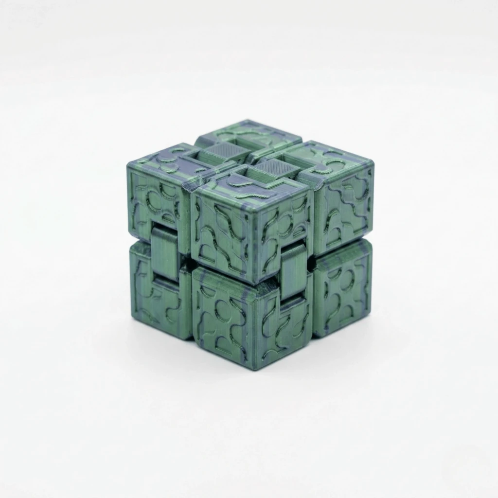 Işığın açısına göre değişen büyüleyici yeşil ve mavi renk tonları ile yüzeyindeki detaylı geometrik desenler, bu küpü sadece bir oyuncak değil, aynı zamanda çalışma masanızda şık duracak modern bir aksesuar haline getirir. Katlanabilir pürüzsüz menteşe yapısı sayesinde tek elle bile kolayca kullanılabilir ve saatlerce süren rahatlatıcı bir his sağlar.