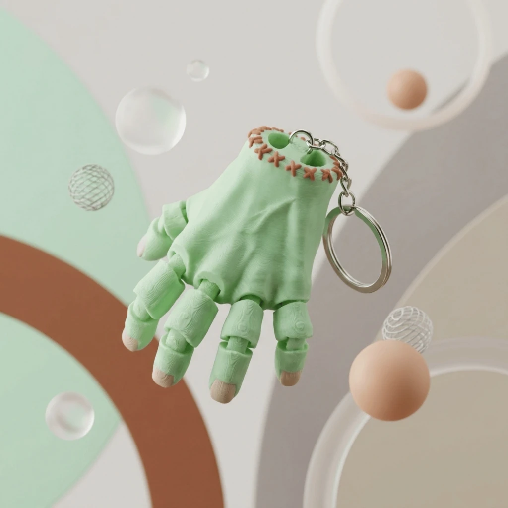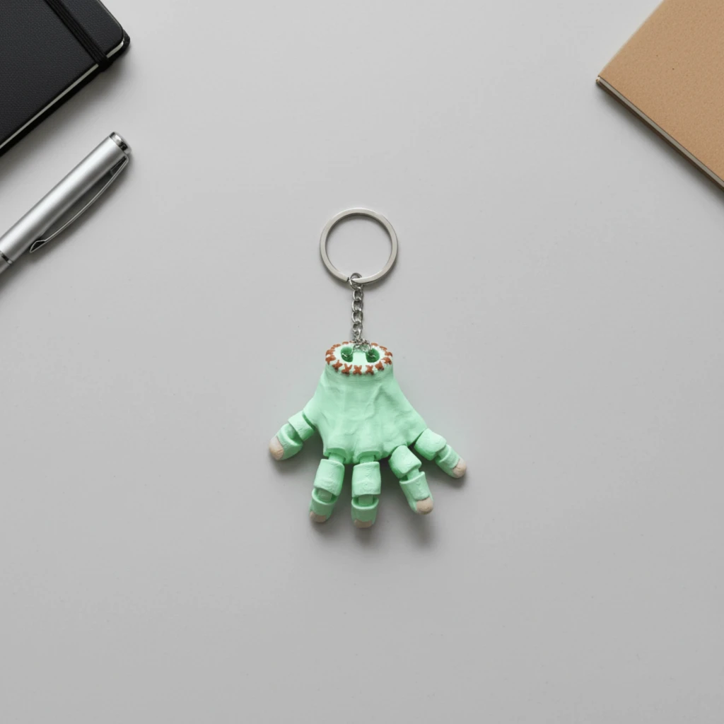 Addams Ailesi'nin unutulmaz karakteri, canavar el (Thing), şimdi cebinizde! 3D yazıcı teknolojisi kullanılarak katman katman titizlikle üretilen bu nane yeşili canavar el anahtarlık, sıradan aksesuarlardan sıkılanlar ve gotik mizah severler için mükemmel bir alternatiftir.