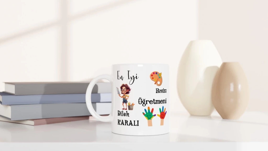 Bu özel porselen kupa bardak, öğretmeninizin ismine göre kişiselleştirilir.