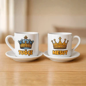 Kişiye Özel Kral & Kraliçe Kahve Fincanı Seti – İsim Baskılı Porselen 2’li Set – Hediye Kutulu