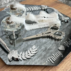 Gümüş Altıgen Yaprak Desenli Söz Nişan İsteme Tepsisi