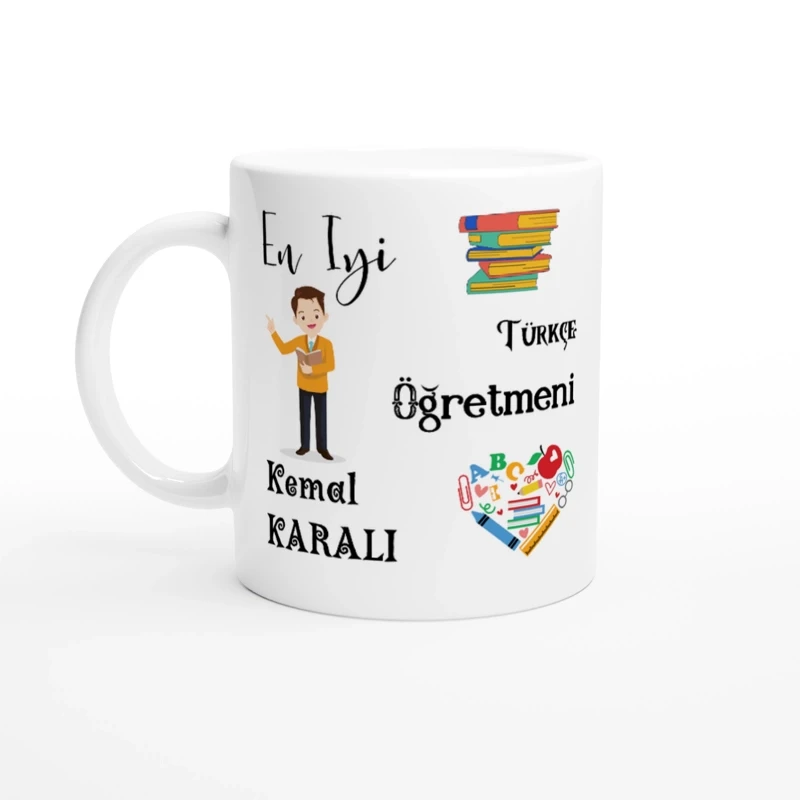 Kişiye özel isim baskılı porselen kupa bardak, çift taraf baskısı sayesinde tasarım her açıdan görünür.