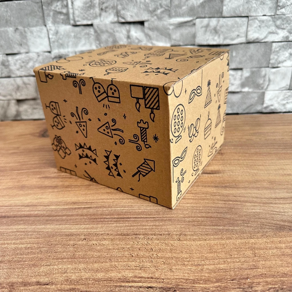 Desenli kutu ebat 13,5x13,5x10 cm.