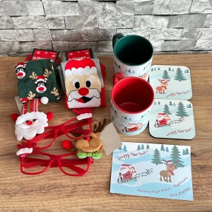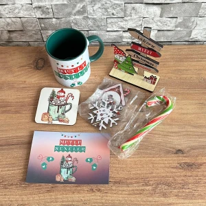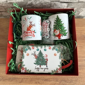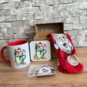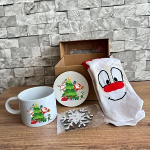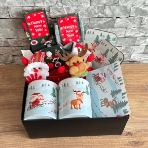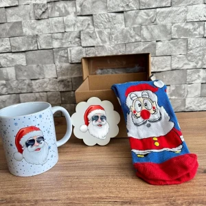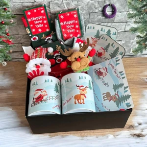 Yılbaşı Ledli , Noel Baba Oyuncaklı Ahşap Hediye Sepeti Model-12