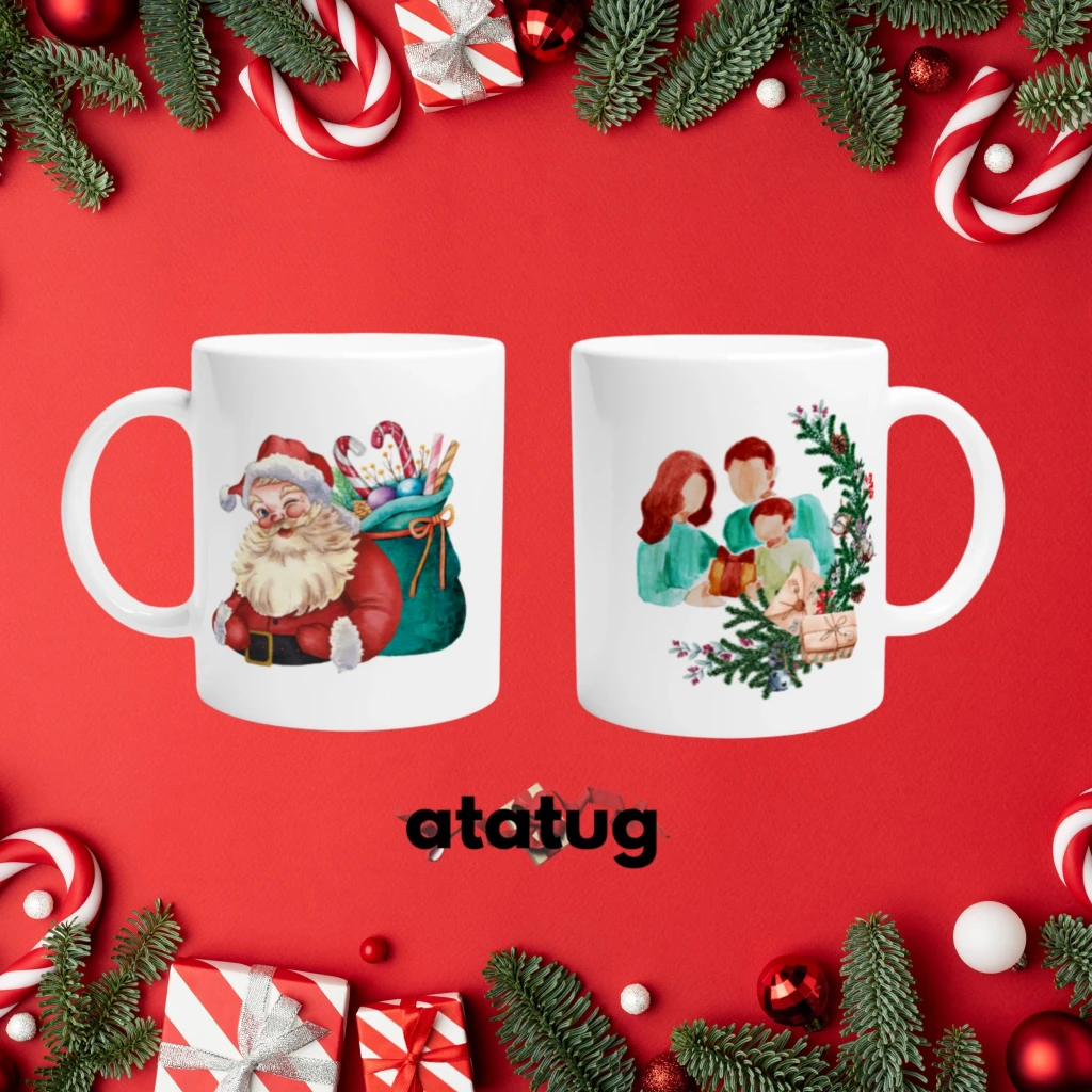 Yılbaşı Özel Hediye Seti - Noel Baba Temalı Çorap, Bardak Altlığı ve Ağaç Süsleme Paketi